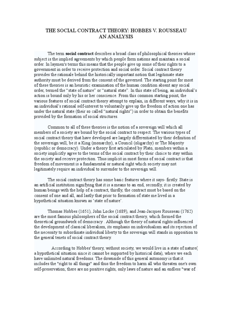 Pdf Summary Of Social Contract Theory By Hobbes Locke And Rousseau